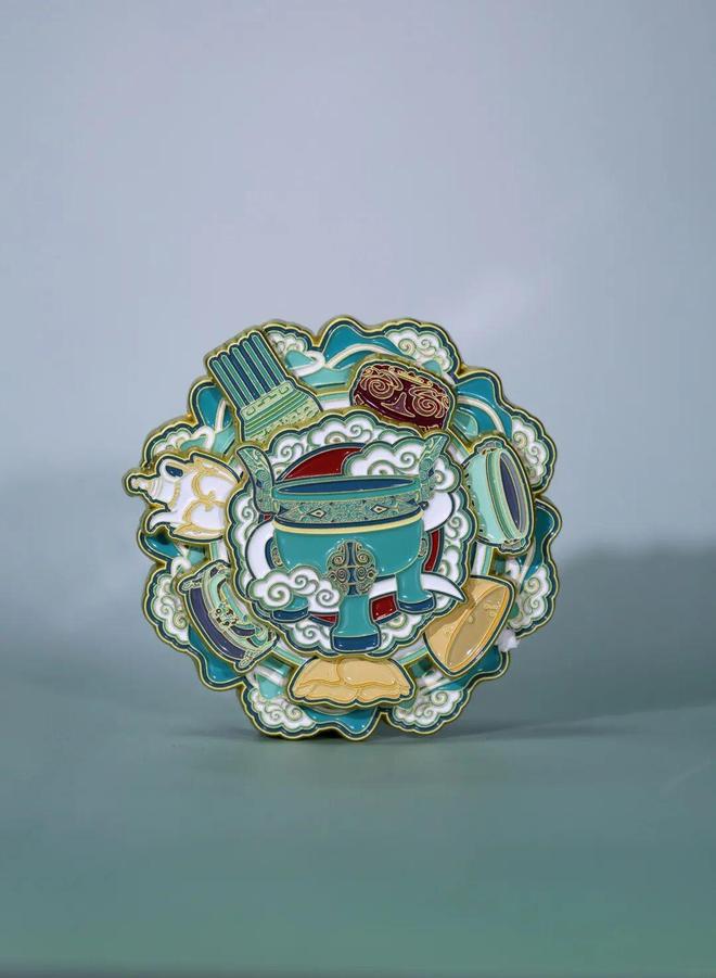 一款融汇了众多宝藏的冰箱贴,以“明星”镇馆之宝楚铸客大鼎造型为C位,“文物大咖”云纹五柱器、剔犀云纹漆盒、吴王光鉴、金扣玛瑙碗、葵花式金盏、龙虎纹鼓座、注子注碗七件珍贵文物造型环绕周围,一眼望去全是历史的厚重感,没事转两圈,解压转转,乐趣无穷。